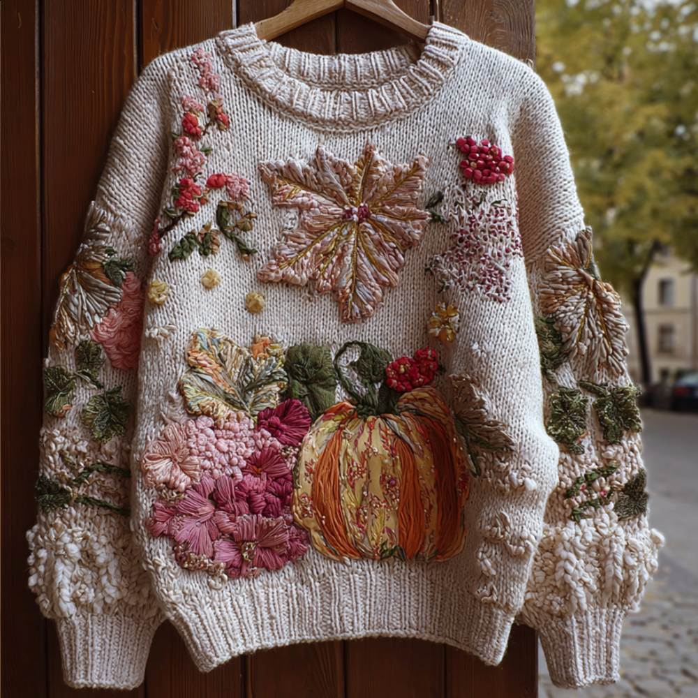 Thanksgiving Plant Flower Splicing Atmosphere Round Neck Sweater